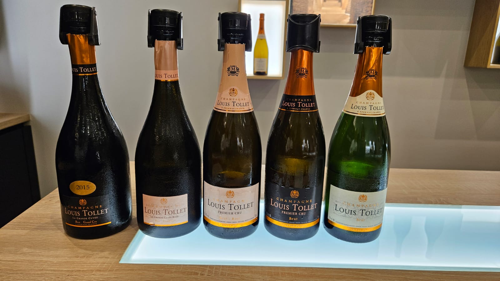 Onder leiding van Guillaume Mignon hebben we midden in de prachtige wijnvelden genoten van de proeverij van de Louis Tollet Brut en Premier Cru en Rosé Champagne. Vernoemd naar de beroemd restaurateur van de jaren 50 van de vorige eeuw. De koperkleurige capsule verwijst naar de koperkleurige pannen uit zijn keuken.